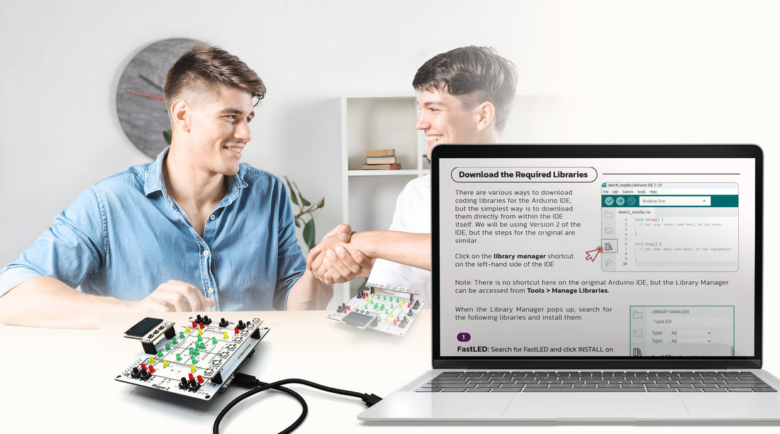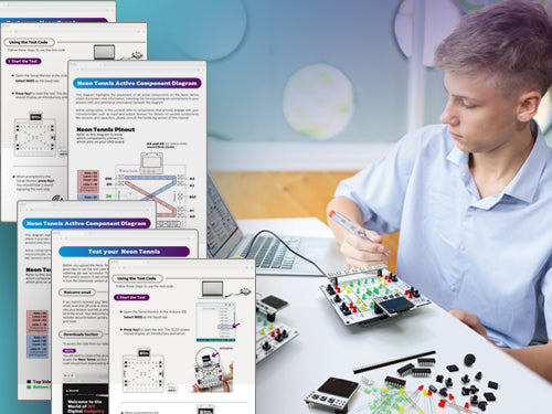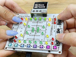 Experience the thrill of Neon Tennis, an original, interactive Arduino-compatible game shield while mastering soldering, coding, and electronics!